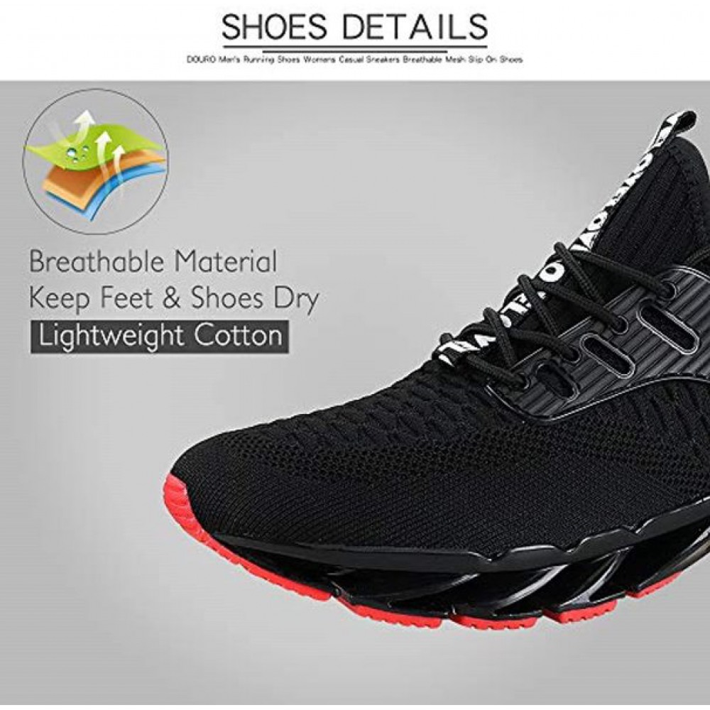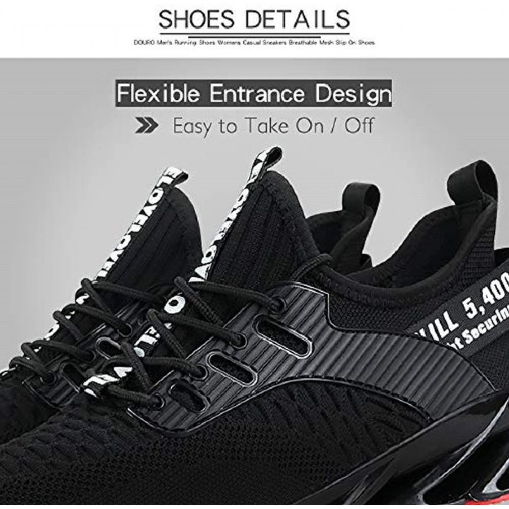 Men's Running Shoes Breathable Knit Slip On Sneakers Lightweight Athletic Casual Sports Shoes High Top All Black