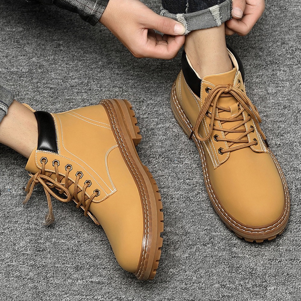 Autumn New Leather Men's Leather Boots Front Lace-Up Low-Heel Martin Boots Mens Shoes